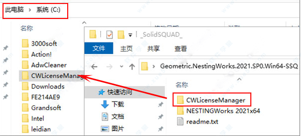 8、后将SolidSQUAD-CWLicenseManager文件夹复制到复制到源程序安装目录下。