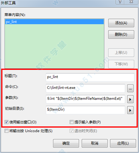 1、点击工具>外部工具>添加,导入pc_lint,
