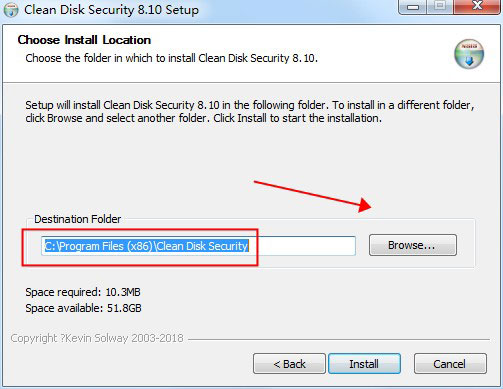 3、系统默认安装在C盘,单击Browse可自定义选择安装路径,Install开始安装。
