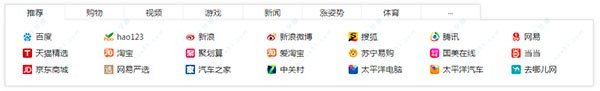 2、下框中更详细的分类,包括购物,视频,游戏,新闻等,对于新手用户非常方便。