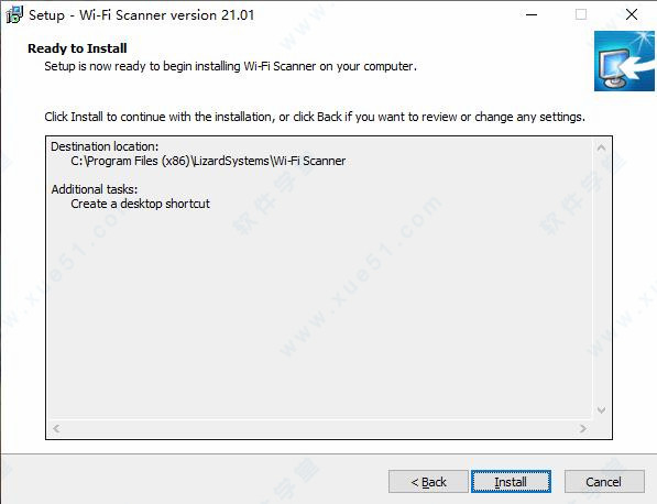 安装向导默认设置的软件默认安装路径为C:Program Files (x86)LizardSystemsWi-Fi Scanner