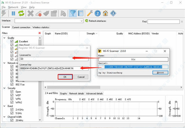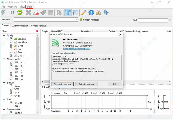 8、双击打开Wi-Fi Scanner软件,软件会自动弹出注册选框,点击Enter license key