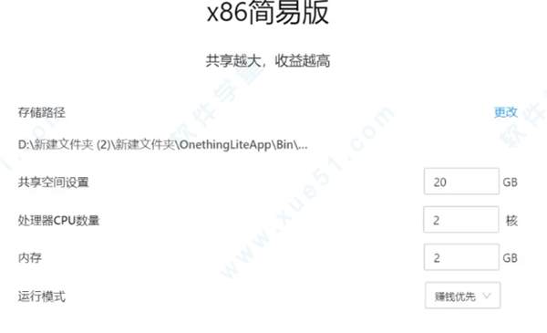 3、安装完成后,根据你电脑本身的性能和内存来选择需要共享的空间,选择完成就开始赚收益啦~