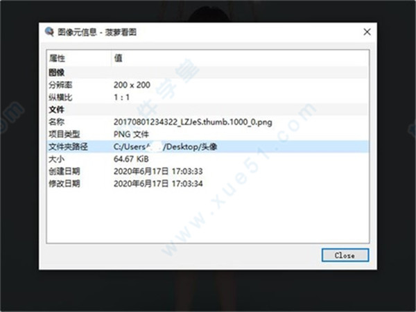 在图片上右键 → 属性,也可以查看图片的一些信息,包括分辨率、文件大小、路径、日期等。