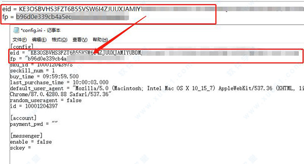 7、将刚才的eid|fp复制到文档对应处,点击保存关闭文档;