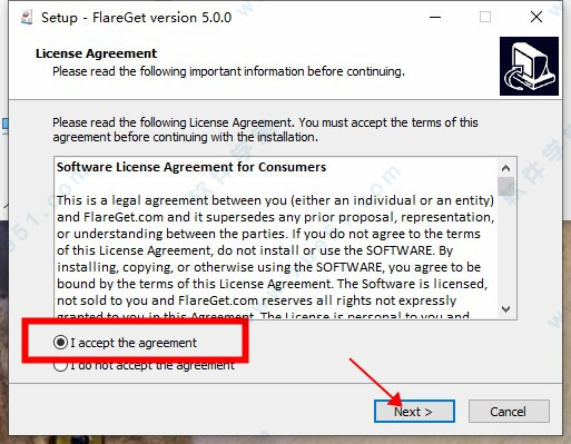 2、双击文件然后开始安装软件,勾选“i accept...”然后点击next继续,如下图所示。