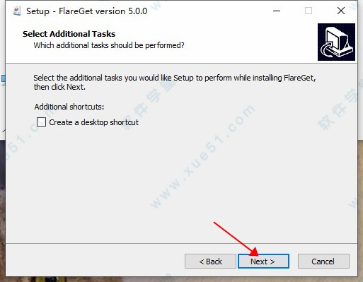 5、这里可以勾选创建快捷方式(create a desktop shortcut),也可以选择不勾选,我这里没勾,然后点击next继续便可。
