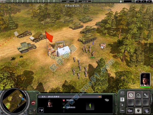 2、更细微的操作。游戏中中各单位有些细微的操作方式。例如士兵可以选择行进方式—站立、蹲姿与匍匐前进。各步兵小队还能选配不同的装备,包括可橡皮艇、燃烧弹、望远镜与地雷探测器等。