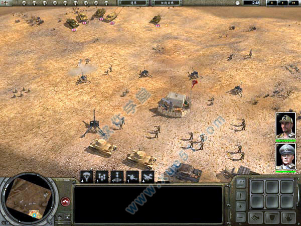 【第四关】隐藏任务:1.至少抢一门88炮;2.只有少数轴心国军队到达突尼斯,全歼完全能做得到。注意不要一开始就让两位英雄会面,让他们打完所有的敌人再会面。这关飞机较多,如果不抢防空炮的话,飞机会一直出动。