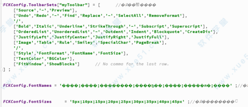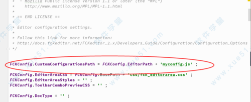 3、通过前面的配置,CKEditor就可以使用了,如果需要修改FCKEditor的默认配置,可以通过修改CKEditor的配置文件fckconfig.js。一般不推荐这样配置,而是通过重新创建配置文件,然后通过fckconfig.js指定该配置文件来覆盖默认配置
