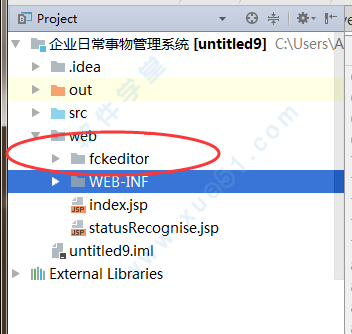 1、要使用CKEditor首先需要将fckeditor文件夹复制到项目web目录下,fckeditor文件放置位置如下图