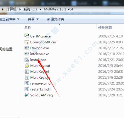 4、将_SolidSQUAD_下的MultiKey_18.1_x64文件夹拷贝到你的电脑上,运行install.bat。