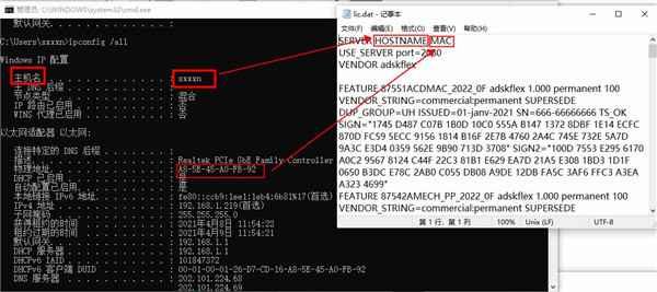 12、右键记事本编辑破解许可证文件lic.dat,在里面填上您的计算机名和MAC地址,编辑好之后保存;