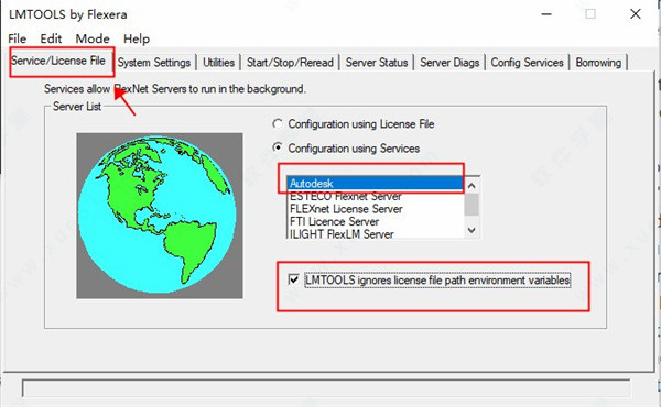 15、点击Service/License File标签,打钩LMTOOLS ignores license file path environment variables。