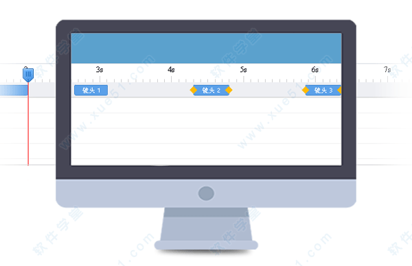 在时间轴上编辑录像非常容易方便。您不仅可以在时间轴上添加任意不同元素并灵活控制各个元素的出场顺序和播放时长,还可以为不同元素添加不同的进场,强调和出场动画效果,轻轻松松制作出您的个性化动画视频