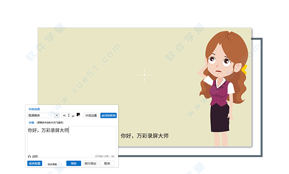 字幕和配音可以帮您进一步解释说明录像画面内容,避免画面的单调性。同时万彩录屏大师可以帮您轻松实现配音字幕画面同步播放,获得极佳的视觉体验效果