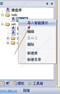 5、启用库文件智能提示功能:右键点库,在弹出菜单中点击“导入智能提示”。