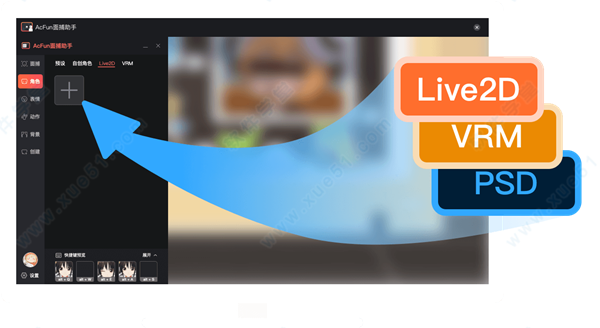 直播辅助软件,采用了先进的面部捕捉技术,可以将用户的人脸替换成可爱的二次元角色。软件内置了多种不同风格的卡通美少女的预设形象,你可以选择自己喜欢的角色进行替换,如果都不满意,你也可以导入自己喜欢或创作的模型。软件通过摄像头捕捉主播的面部表情和动作,你的一举一动都可以同步地反映在这个虚拟的形象上,真的是神同步的那种。而且你还可以对角色、背景、动作和表情等参数进行调整,让她们变得更加生动和可爱。另外,AcFun面捕助手操作简单易上手,打开摄像头导入图片就即可生成虚拟角色,而且软件内附带了PSD模板和教程,可以说是虚拟直播必备的神器。