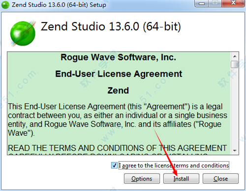 百度网盘上下载好资源后解压安装zend studio 13.6,勾选协议点击install开始安装