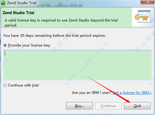 3、进入软件界面后需要输入注册码,我们点击quit先退出