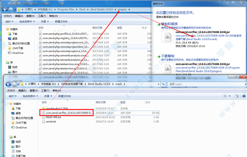 4、断掉网络,将解压文件中的com.zend.verifier_13.6.0.v20170406-0246.jar文件复制到软件安装目录下的plugins目录下,点击复制和替换