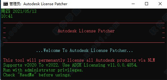 2、在操作此步骤时千万不要打开运行软件,如果已经打开了那么请关闭掉,随后将本站下载的破解补丁“Autodesk License Patcher Ultimate.exe”点击运行打开,等待一段时间让它完成运行即可。