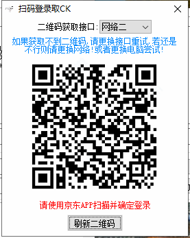 3、测试过程中小编发现默认的“网络一”不好使,切换为“网络二”并点击“刷新二维码”,接着扫码登陆即可。