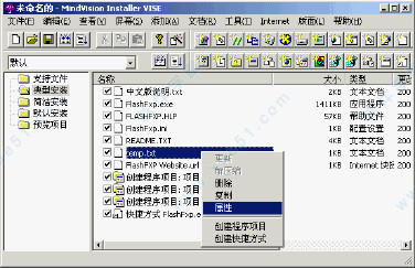 8、接下来先不要急于“建立安装程序”,因为还有一些工作要做,大家记不记得我假设了一个文件“temp.txt”必须被安装到“c:\windows\system”目录下?若此时“建立安装程序”,那么所有文件是被作为默认路径安装到用户的目录中的,所以我们先选择“关闭”。关闭后,您将在软件的主窗口中看到所有您的文件列表,包括您创建的快捷方式等。右击文件“temp.txt”,在右键菜单中选择“属性”