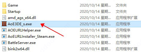 2、在游戏根目录中找到AoE3DE_s.exe文件,双击它就能进入游戏了。