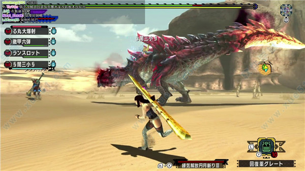 武器特点:除了拥有媲美长枪的攻防能力外,还可以发射炮击。炮击无视肉质造成固定伤害。因此对付一些肉质很差的怪物非常好用。移动速度较慢。