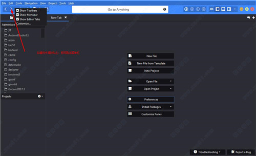 1、右键左上角的三角箭头,勾选第二个即可跳出菜单栏