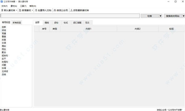 第二步:打开“公文写作神器”,然后将刚才下载的“素材库扩充包”用鼠标拖动到软件主界面任意位置。