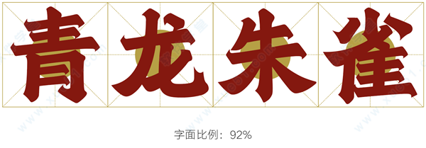 “汉仪瑞兽体”的字形方正,布白合理,粗细灰度均匀。字面、横纵向重心稳定一致。笔画多为向下且外扩的走势,撇捺浑厚,字形上略有上收下放之势。