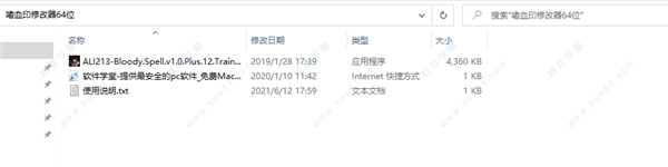 首先电脑上安装好游戏,不然想用修改器也是扯淡!!!1、在本站下载好这款嗜血印修改器64位小幸姐版,将其解压出来可得到如下文件。