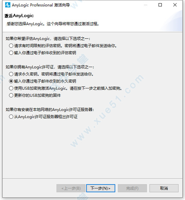 8、现在我们启动软件,如图所示,选择(输入您通过电子邮件收到的永久密钥)选项,点击下一步。