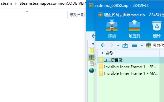 2、将噬血代码去面罩mod文件复制到Steam/steamapps/common/CODE VEIN/CodeVein/Content/Paks/~mods文件夹下;
