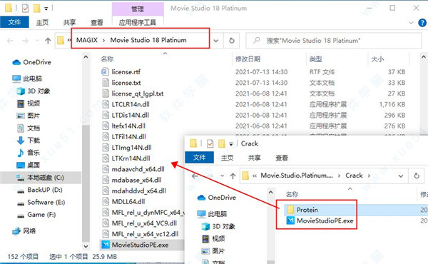 下载软件的补丁压缩包并解压,得到Movie Studio 18的破解文件。