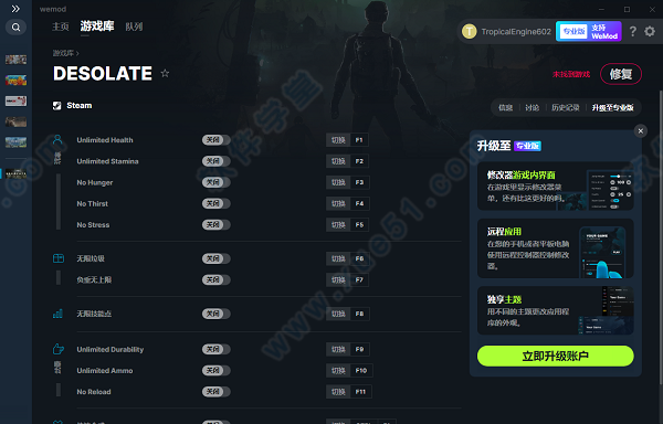 3、双击exe文件安装WeMod,如果已经安装直接搜索游戏英文名使用(可能需要科学上网);