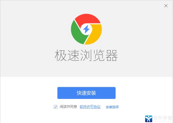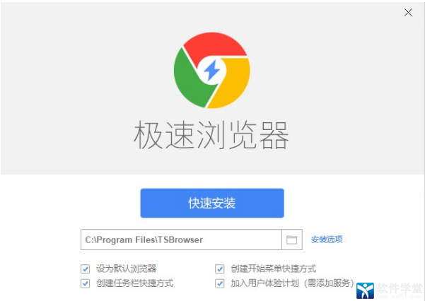3、点击快速安装,安装完成即可使用极速浏览器。