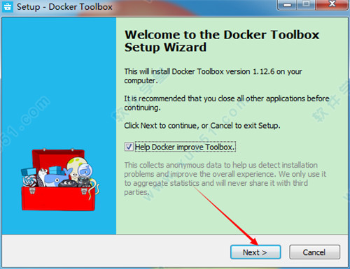 百度网盘下载好资源后解压,点击“DockerToolbox.exe”安装程序