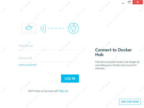 3、如果你还没有账户,你可以在应用程序上点击注册(Sign Up)链接并在 Docker Hub 上创建账户。