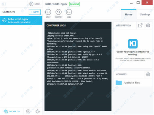 Kitematic是一个具有现代化的界面设计的自由开源的Docker容器管理程序,它可以让我们在 Docker 中交互式执行任务。软件设计的非常漂亮、界面美观。使用它,我们可以简单快速地开箱搭建我们的容器而不需要输入命令,可以在图形用户界面中通过简单的点击从而在容器上部署我们的应用。集成了 Docker Hub,允许我们搜索、拉取任何需要的镜像,并在上面部署应用。它同时也能很好地切换到命令行用户接口模式。目前,它包括了自动映射端口、可视化更改环境变量、配置卷、流式日志以及其它功能。