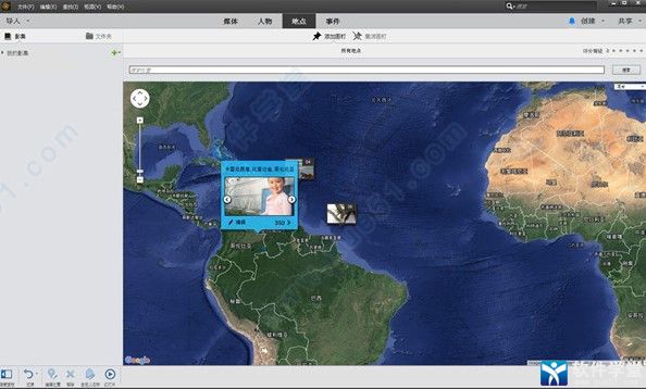 在“地点”视图中,可以对照片添加位置信息。这对于您希望重游的地方或希望记住的旅行,便于查找当时所拍摄的照片。有关更多信息,请参阅 Elements Organizer 帮助中的添加地点信息。