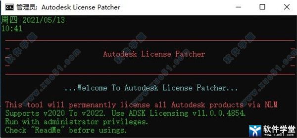 7、接下来进行软件破解,我们回到刚才下载的数据包中,运行破解补丁“Autodesk License Patcher Ultimate.exe”文件。
