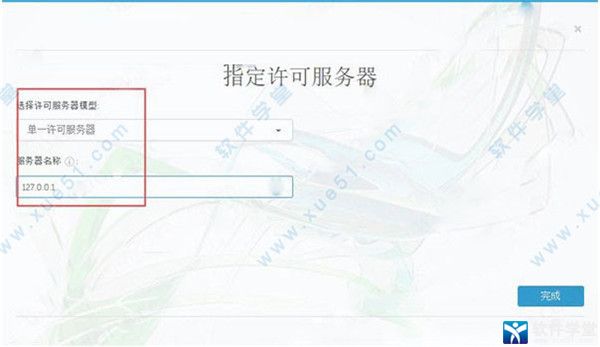 9、选择“单个许可证服务器”输入“127.0.0.1”。