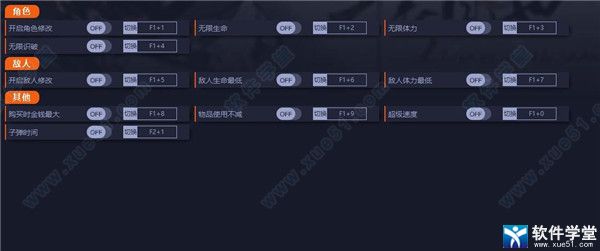1、开启角色修改:进入游戏控制角色时开启,受到攻击刷新。