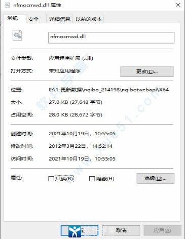 下载软件时所携带的病毒篡改了系统程序导致dll文件丢失,从而导致计算机系统组件无法正常工作,大家不用着急,更不用担心,如果你在运行软件的时候也遇到了提示缺少这个文件造成程序无法正常运行这个问题,那么,可以在本站下载nfmocmwd.dll文件包即可修复以及解决此类问题,只需将该文件下载至电脑桌面,然后复制粘贴到系统目录下就可以了,是不是很简单呢?