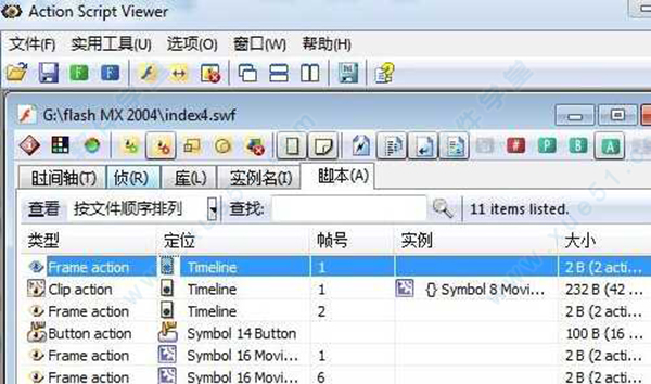 ①方便地查看SWF文件的ActionScript。有三种视图模式可用:AS代码的常见表示,P代码和十六进制转储视图