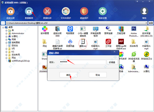 6、如果你想解密文件,选择解密对象后,点击“数据解密”输入之前设置加密的密码,文件就解密了