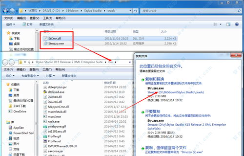3、将解压文件中的破解文件全部复制到软件安装目录下的bin目录。点击复制和替换